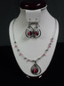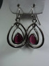 New without tags, Cotton candy, pink cat's eye stone mounted in a double silvertone teardrop pendant dangling from a hook wire earrings measures 1 1/2 inches in length, necklace is approx. 16-19 in length