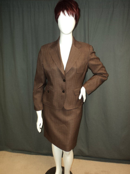Gently used, shell: 99% polyester 1% spandex, lining: 100% polyester, brown, size 14